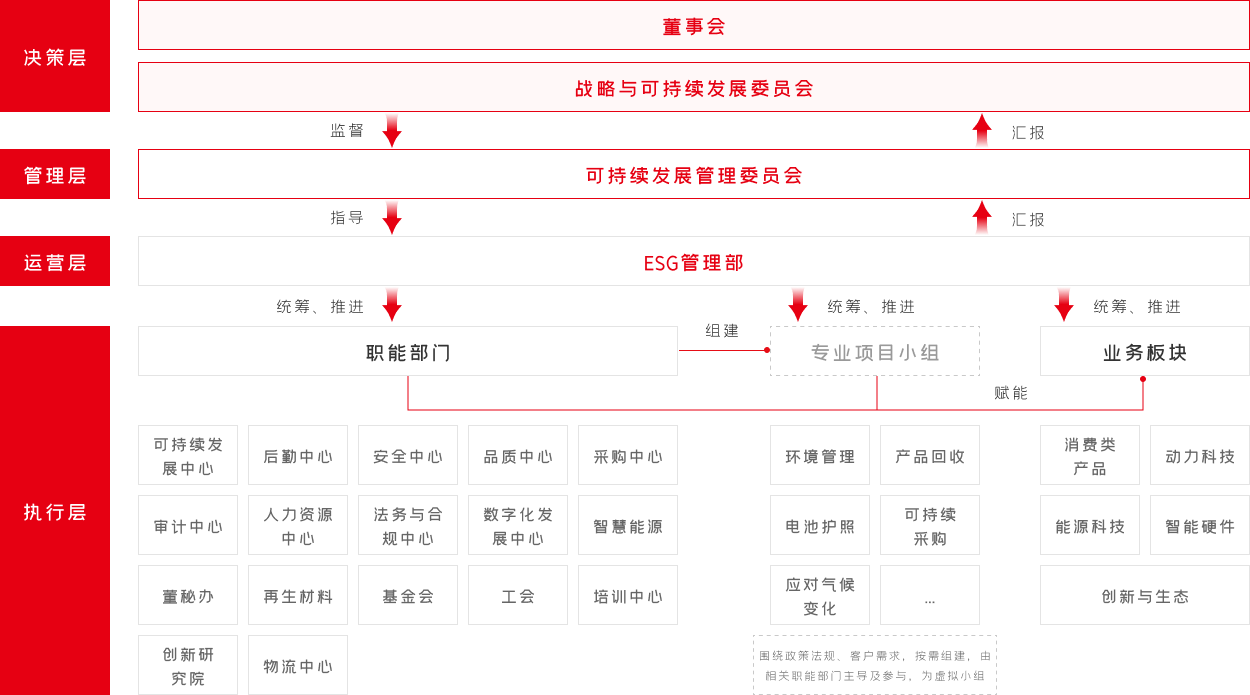 制定决策层、管理层、运营层、执行层四层管理架构。